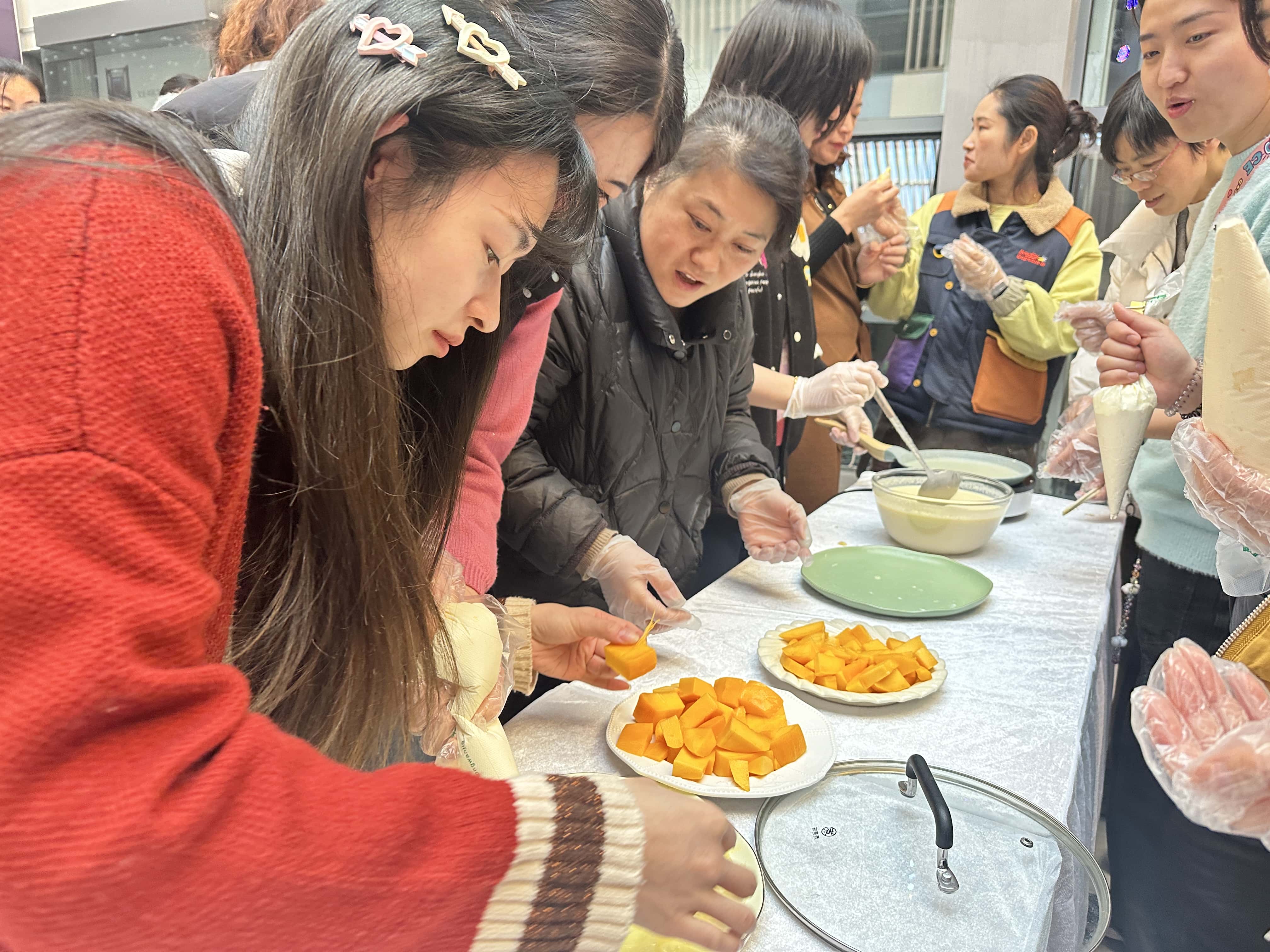 做甜品的参与者们在各自小组的指导下,掌握了制作技巧,展示出了自己的创意和巧手。色泽诱人的芒果班戟,浓郁的奶油和酸甜芒果的碰撞,入口立刻融化的甜蜜,一口就能让你念念不忘!还有巴旦木海盐太妃糖,焦糖的色泽充满温暖的质感,一口咸甜交换,酥脆浓香!