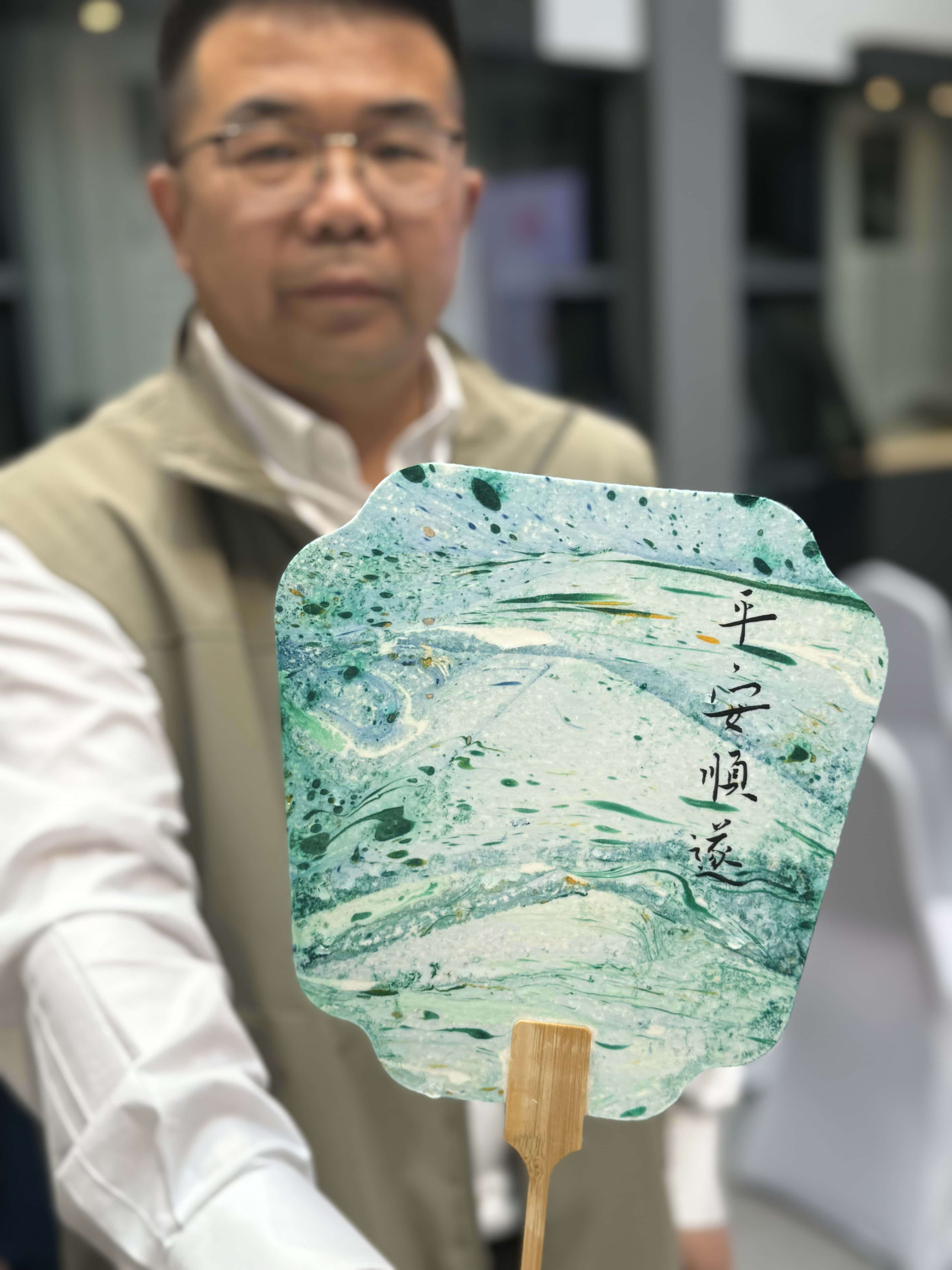 活动开始前,总经理谢洪正亲自提笔,为大家的漆扇题字,增添一份墨香韵味。